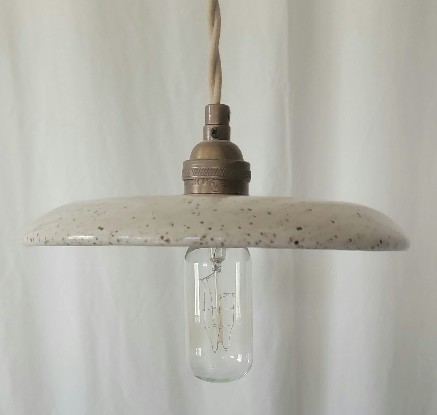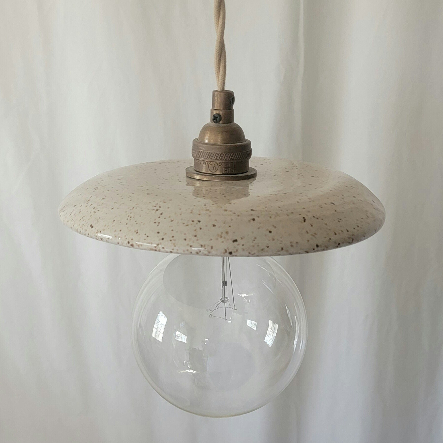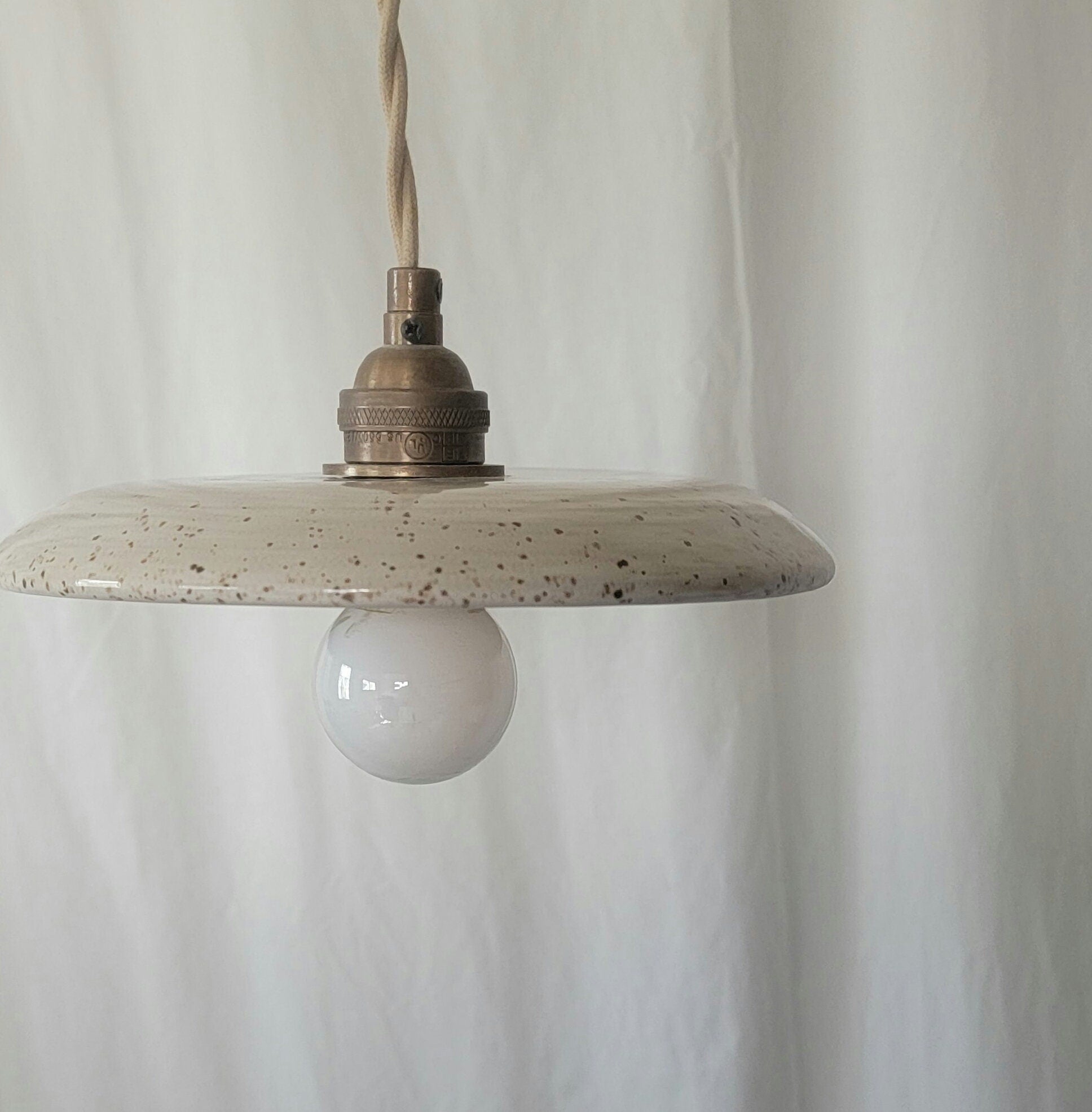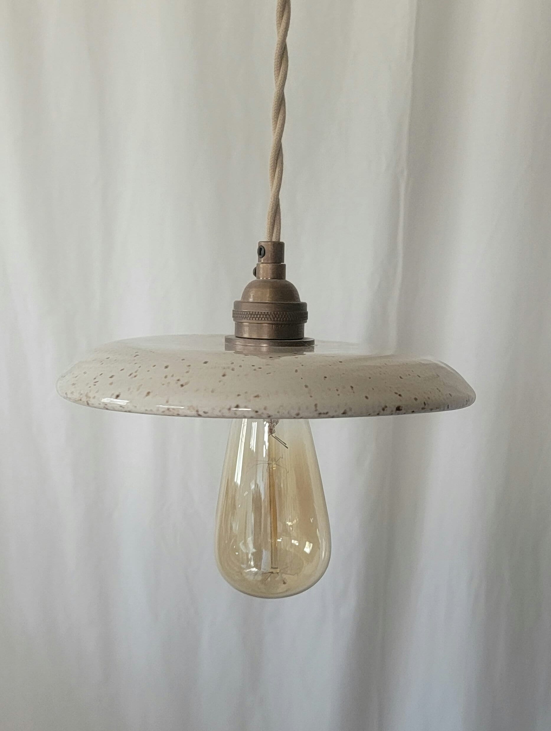Beautiful cream speckled pendant light.